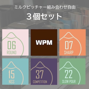 07シリーズ(シャープスパウト)、06シリーズ(ラウンドスパウト)、22シリーズ(ワイドスパウト)、15シリーズ(IVYコラボ)、21シリーズ(テーパード)、ハンドルレス(一部除く)、37シリーズ(コンペティション500cc)よりお好きなミルクピッチャーを3個、購入時の備考欄に記載の上、ご購入ください。